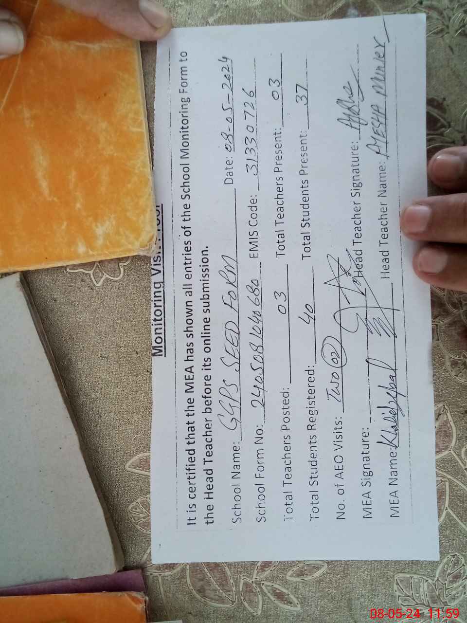 | EMIS Code: 31330726 | Name of School: GGPS SEED FARM | |||