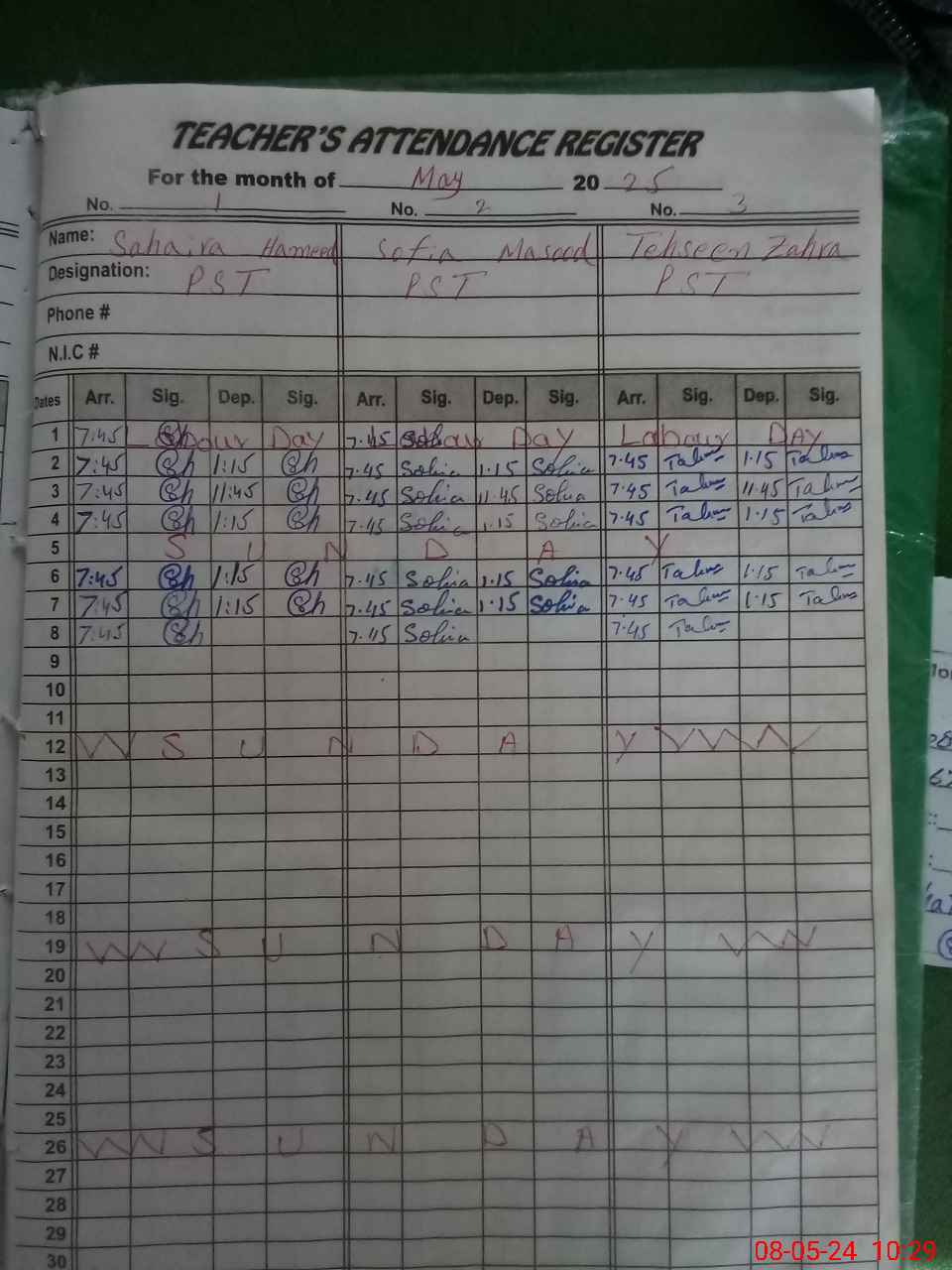 | Name: SA**** HA**** Designation: (School Headmaster's/Headmistress's) PST Head Phone/Cell Number: 03**** |