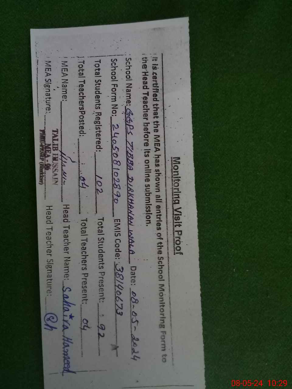 | Certified that this School was Inspected by the Undersigned MEA/DMO Today and the Information Stated Above is as Per Record. | |||||