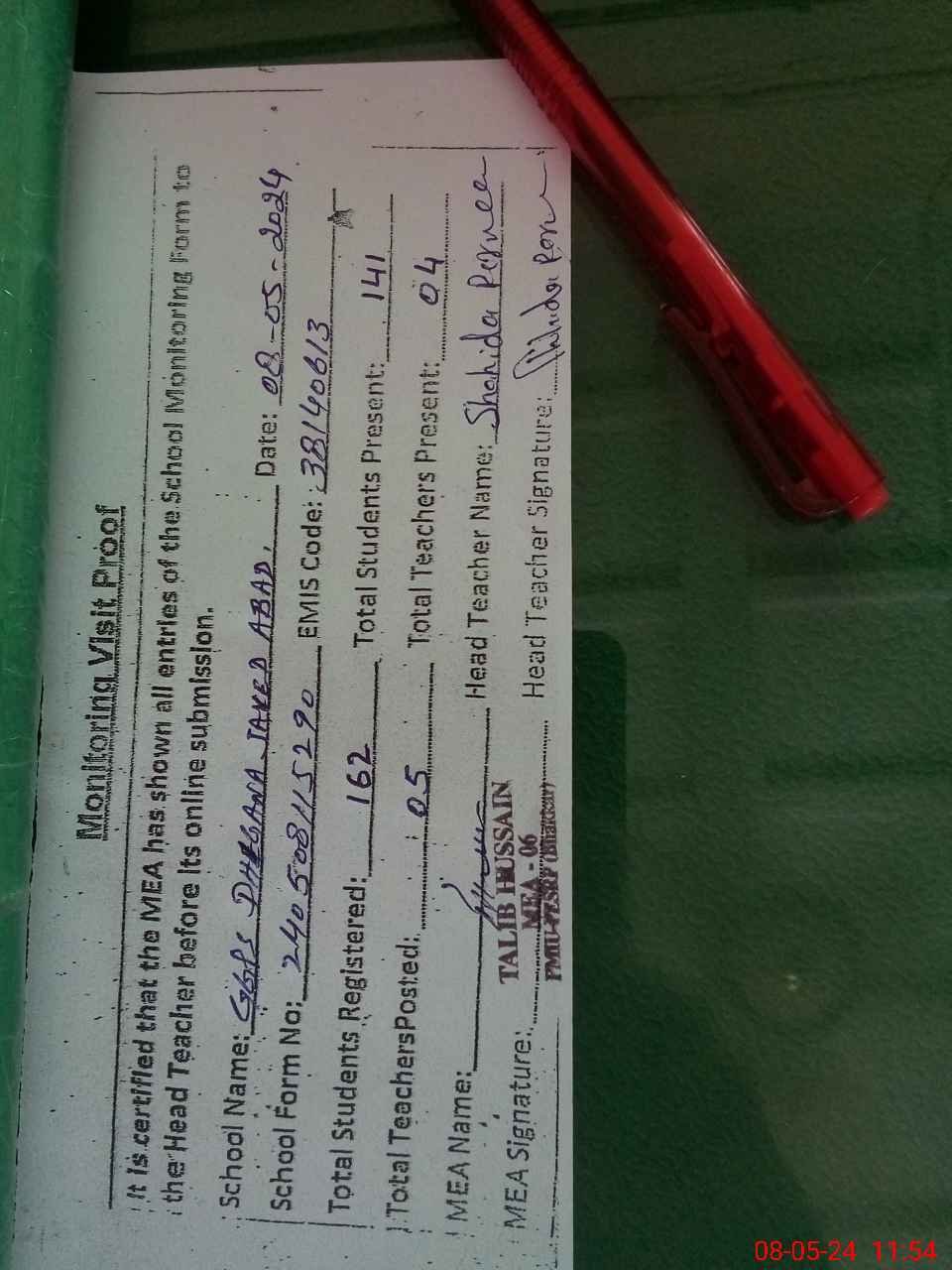 | EMIS Code: 38140613 | Name of School: GGPS DHAGANA JAVED ABAD | |||