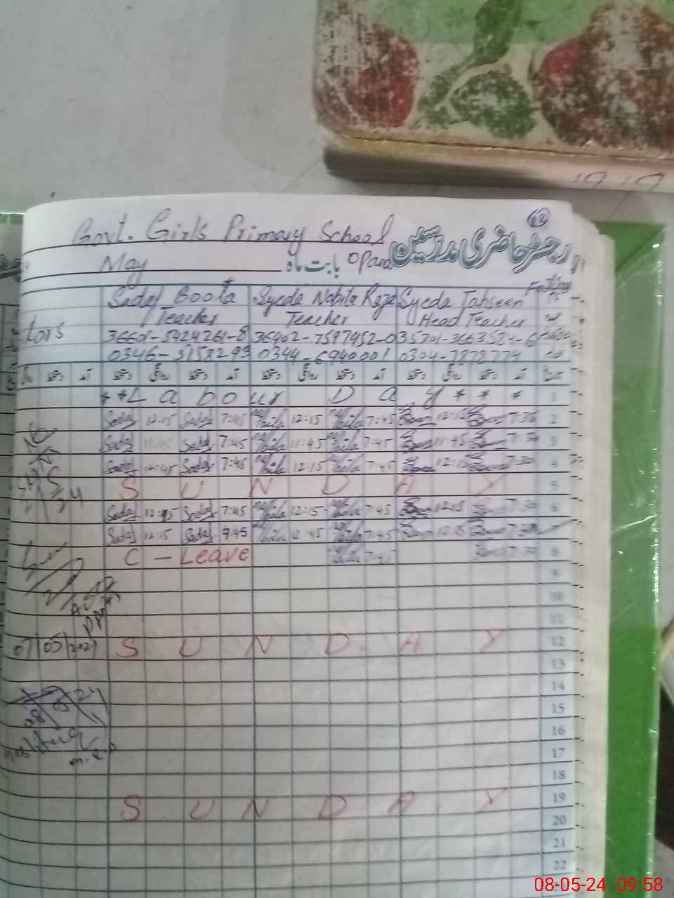 | Name: Sy**** Na**** Designation: (School Headmaster's/Headmistress's) PST(ARTS) Phone/Cell Number: 03**** |