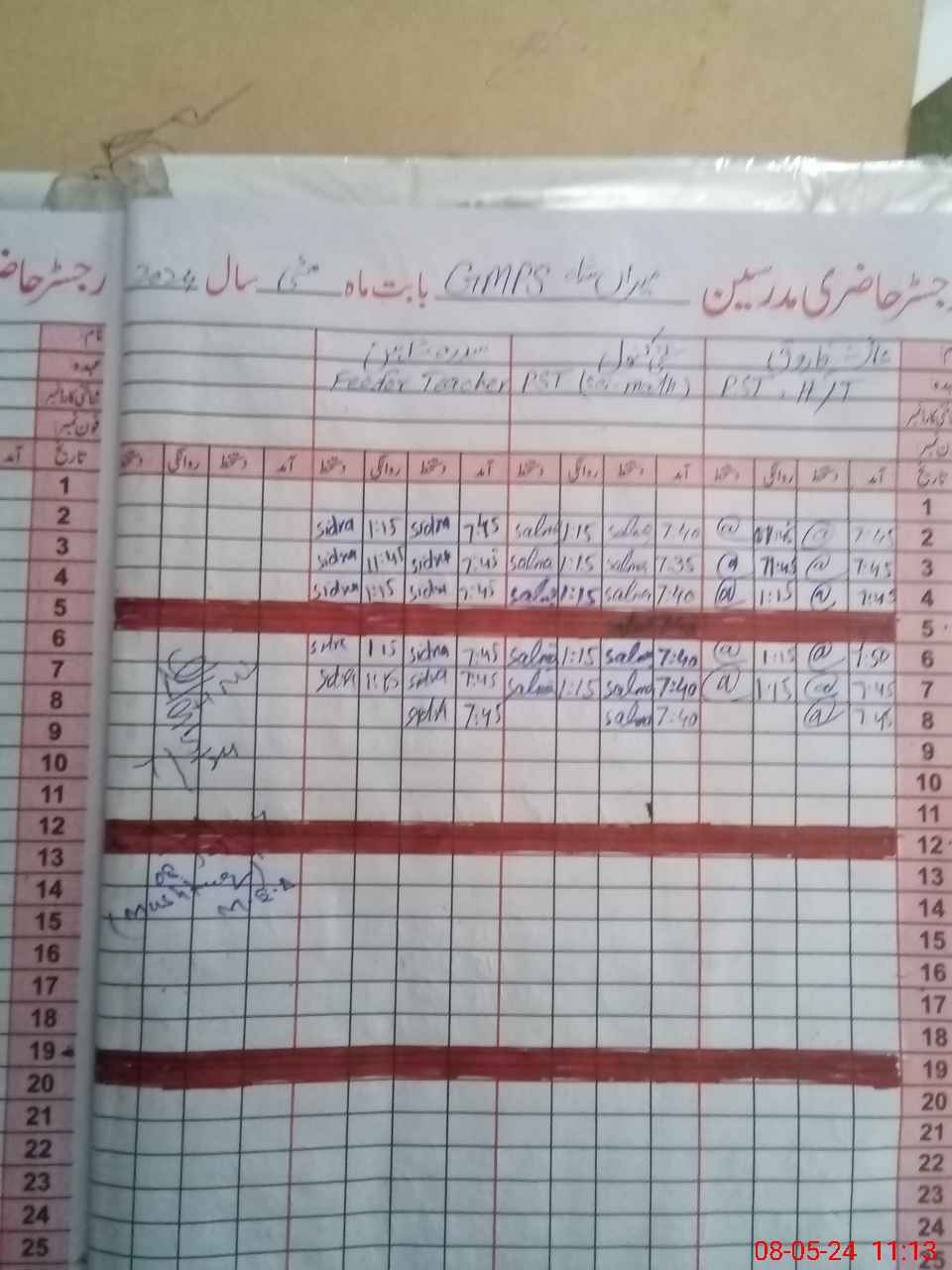 | CNIC | Full Name | Designation | R/C | Absence During Last Calender Month |