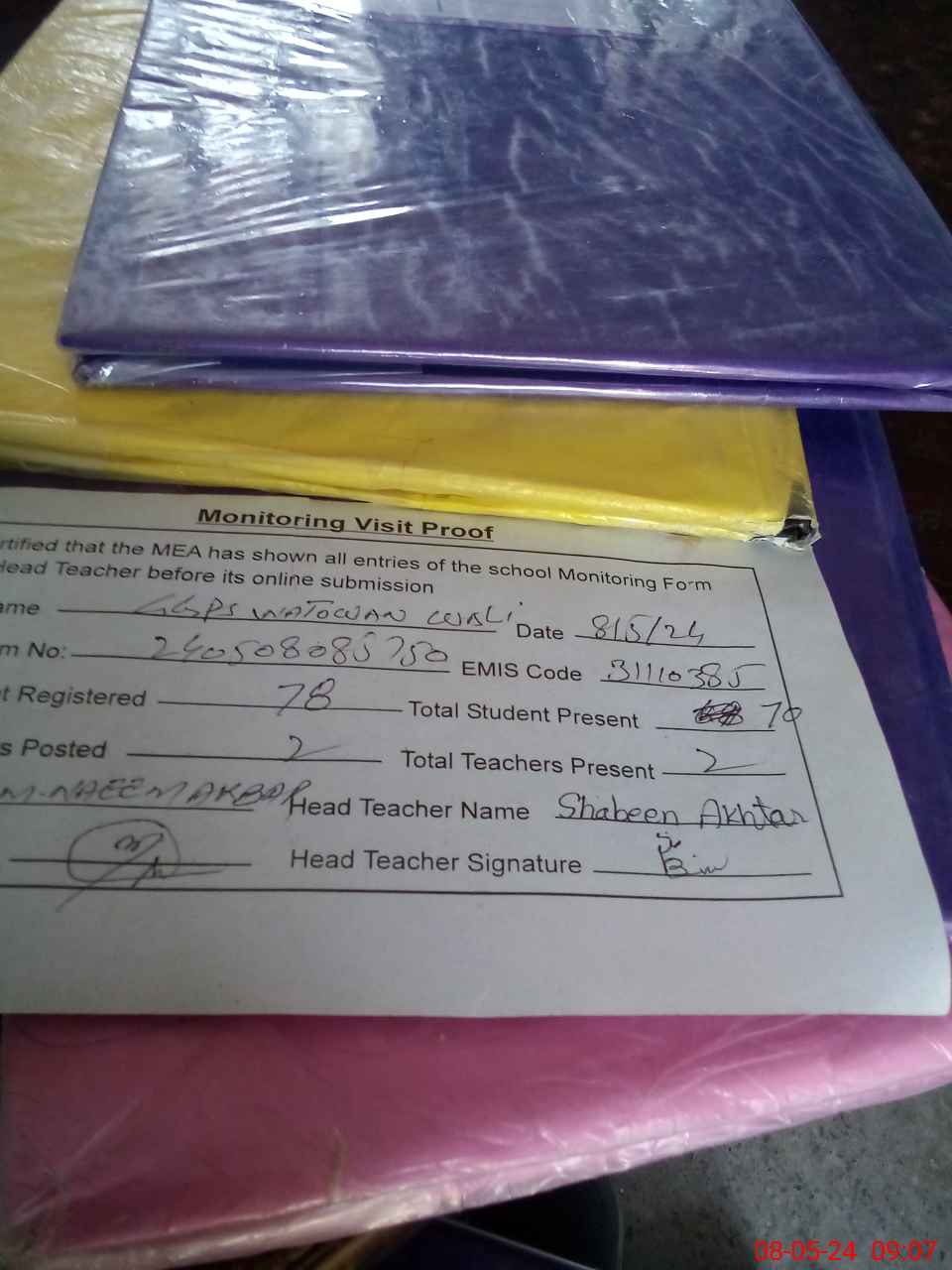 | EMIS Code: 31110385 | Name of School: GGPS WATOWAN WALI | |||