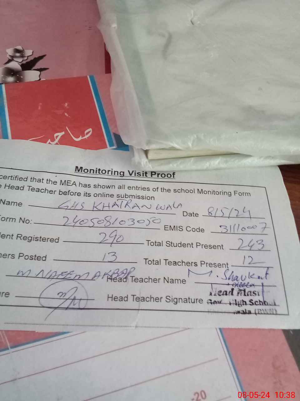 | EMIS Code: 31110007 | Name of School: GHS KHATRAN WALA | |||