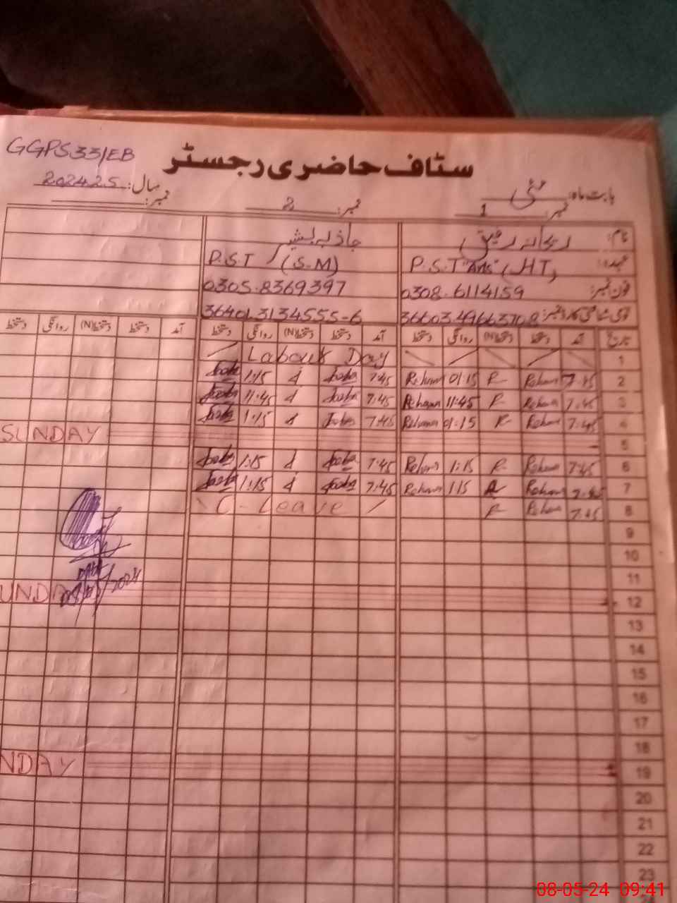 | Name: RE**** RA**** Designation: (School Headmaster's/Headmistress's) PST Phone/Cell Number: 03**** |