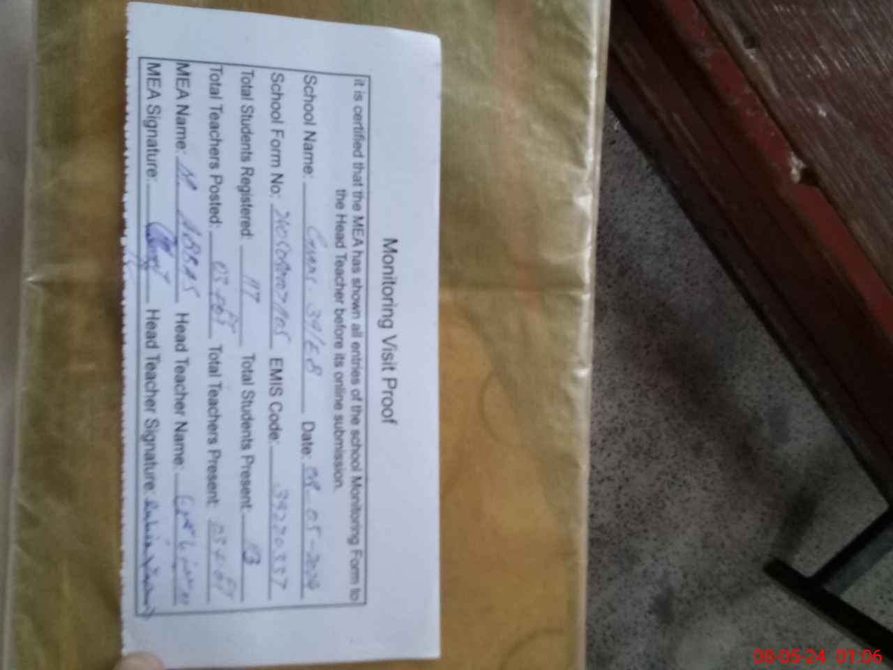 | Certified that this School was Inspected by the Undersigned MEA/DMO Today and the Information Stated Above is as Per Record. | |||||