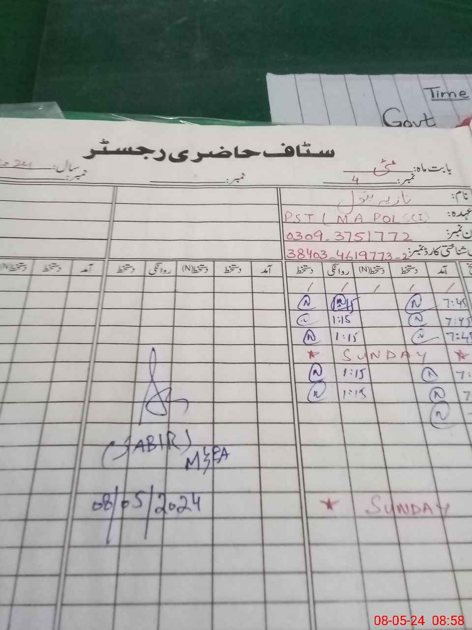 | Name: Sh**** Na**** Designation: (School Headmaster's/Headmistress's) PST Phone/Cell Number: 03**** |