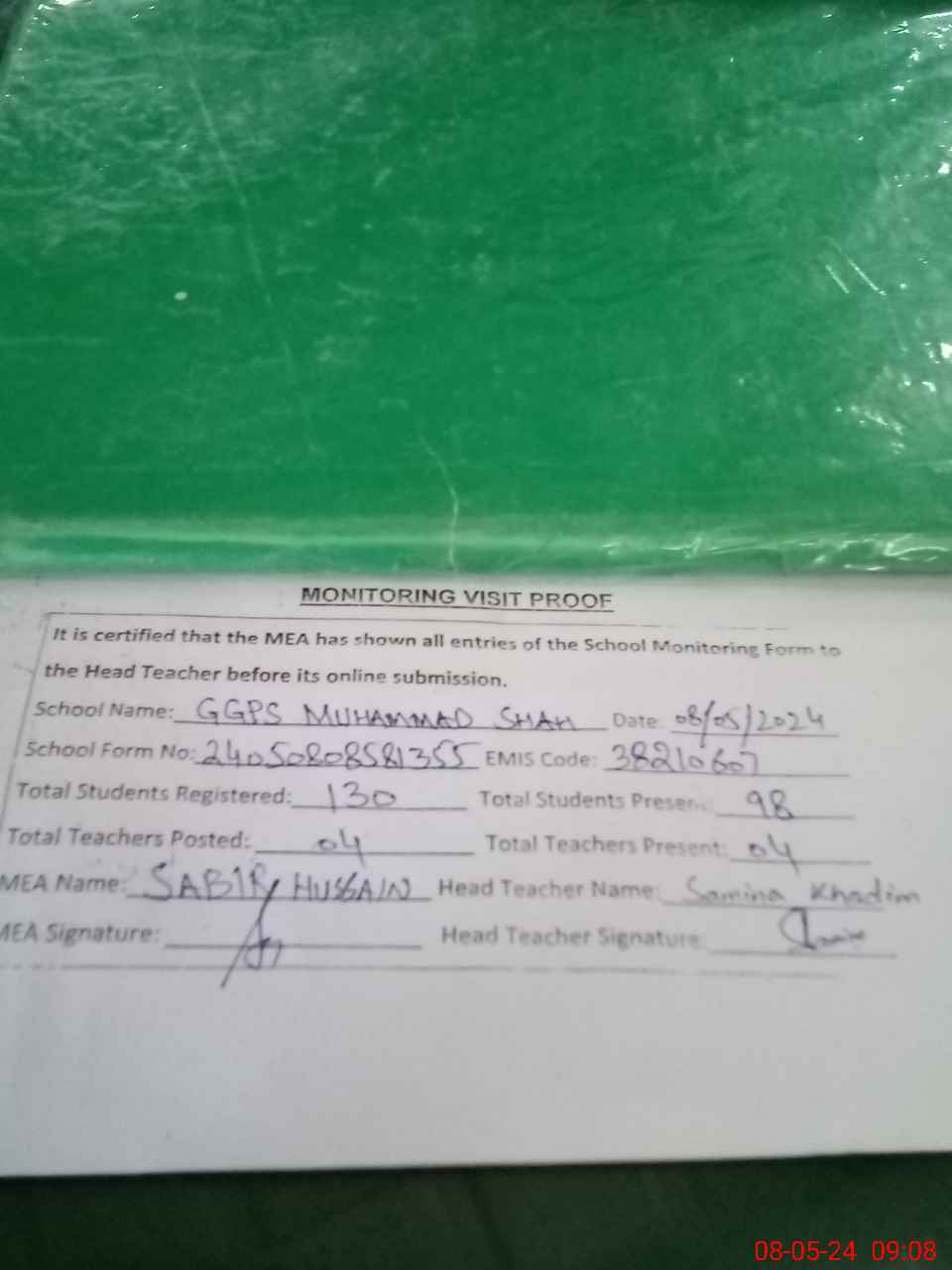 | EMIS Code: 38210607 | Name of School: GGPS MUHAMMAD SHAH | |||