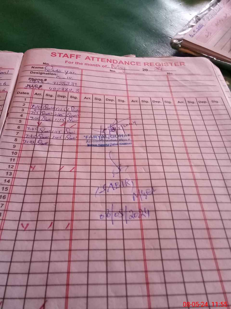 | Name: Fa**** Ba**** Designation: (School Headmaster's/Headmistress's) PST Phone/Cell Number: 03**** |