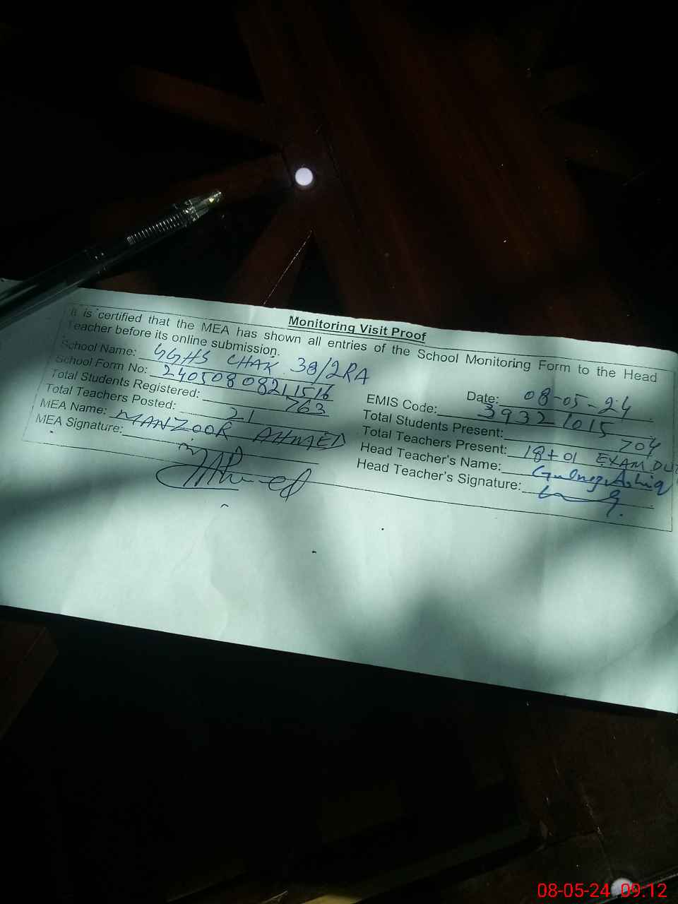 | Name: NA**** AK**** Designation: (School Headmaster's/Headmistress's) Headmaster Phone/Cell Number: 03**** |