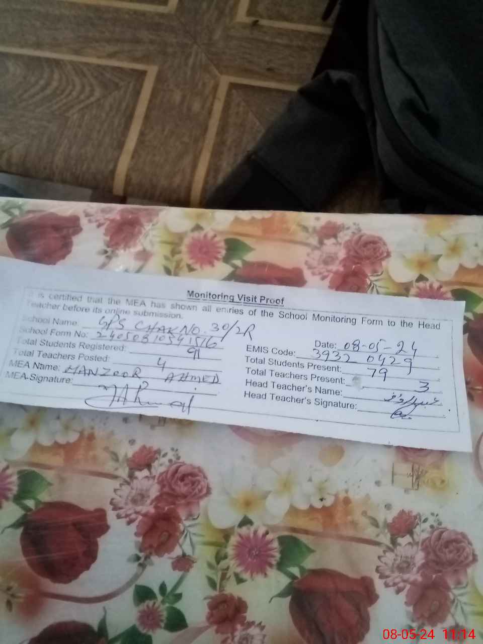 | EMIS Code: 39320429 | Name of School: GPS CHAK NO. 30/2-R | |||
