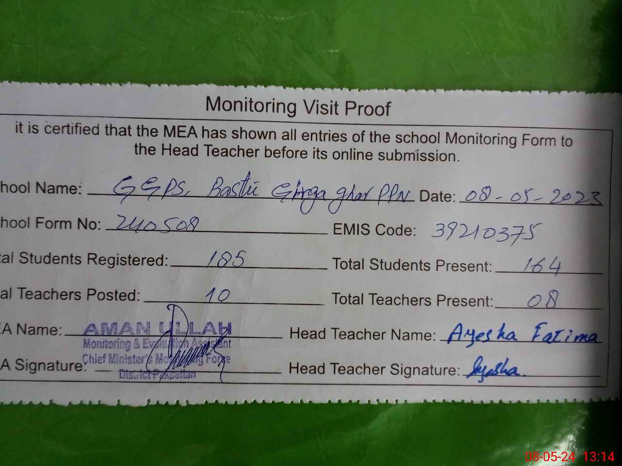 | EMIS Code: 39210375 | Name of School: GGPS BASTI GIRJA GHAR | |||