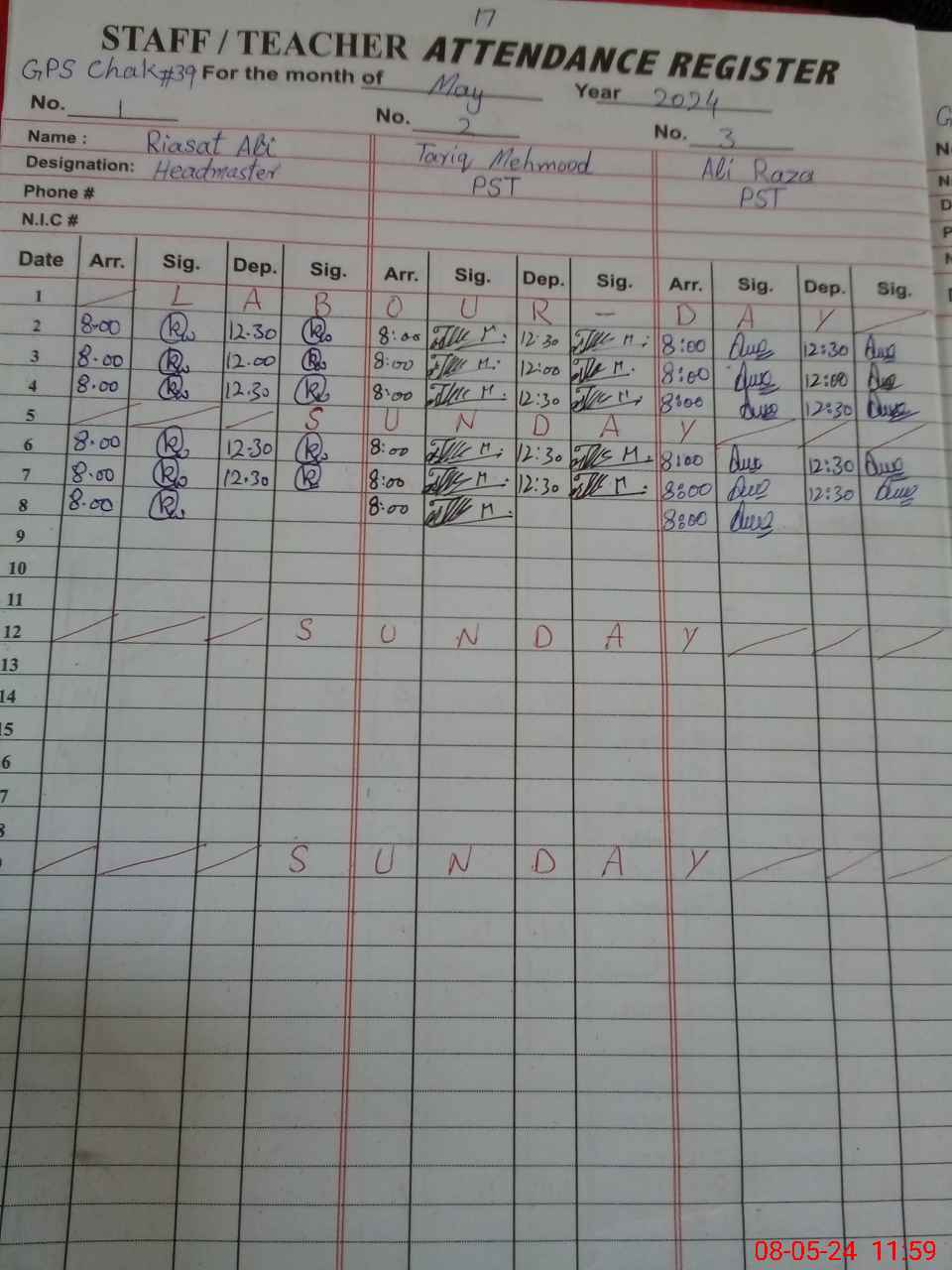 | Name: AL**** RA**** Designation: (School Headmaster's/Headmistress's) PST Phone/Cell Number: 03**** |