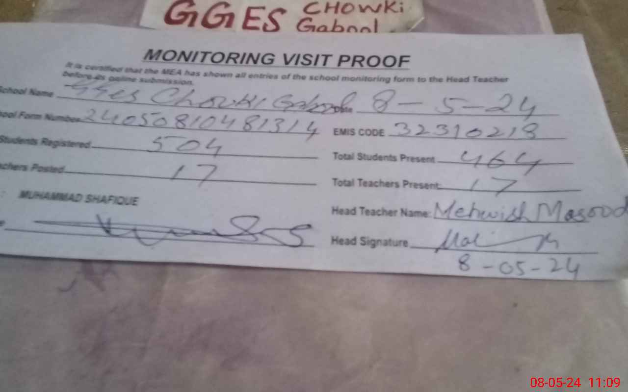 | EMIS Code: 32310218 | Name of School: GGES CHOWKI GABOOL | |||