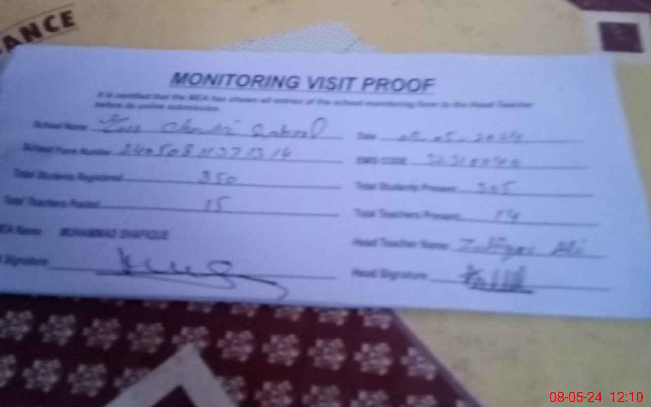 | Attendance Register | Head Teacher | MEA with School | Visit Proof |