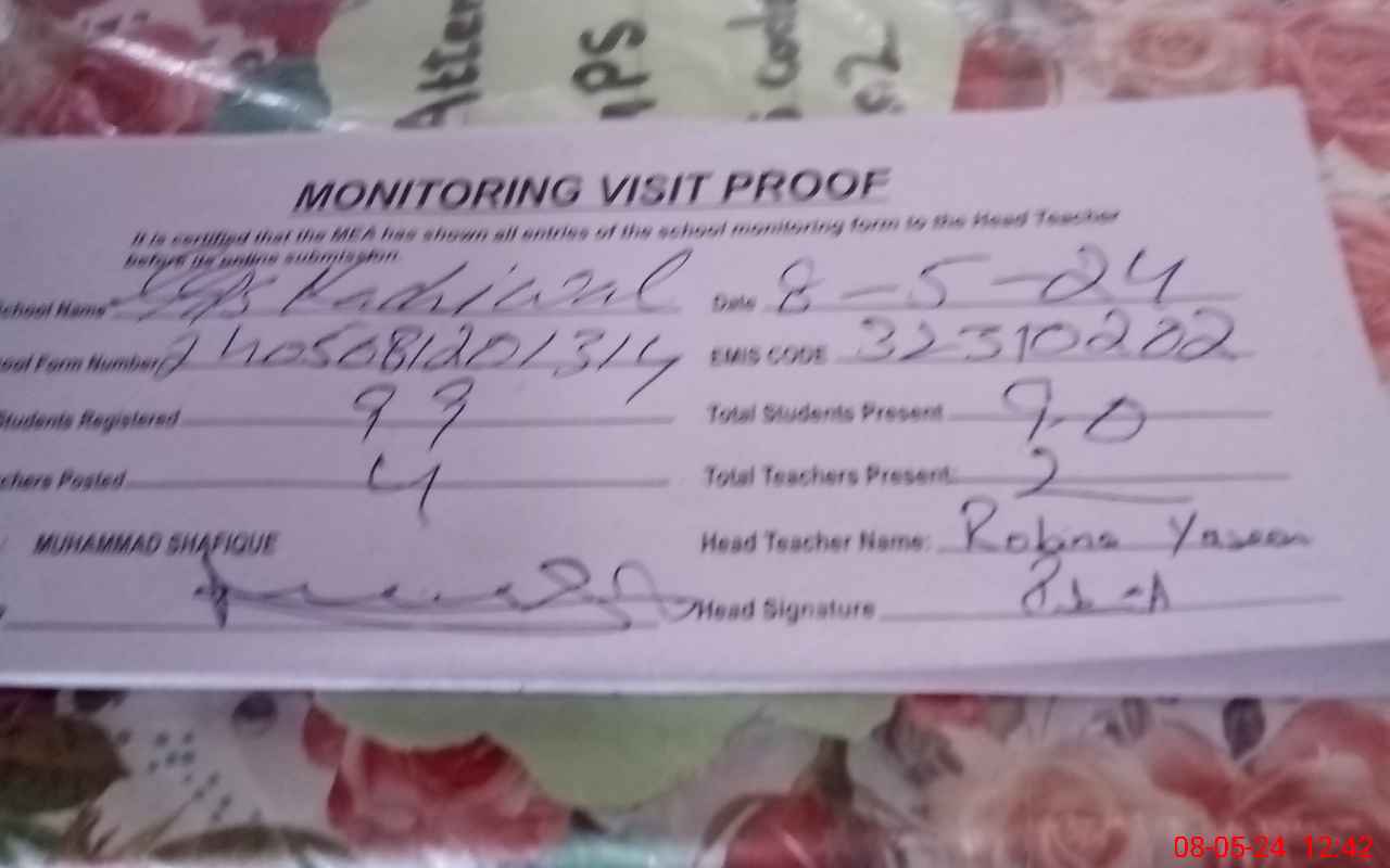 | EMIS Code: 32310202 | Name of School: GGPS KACHI WALI | |||