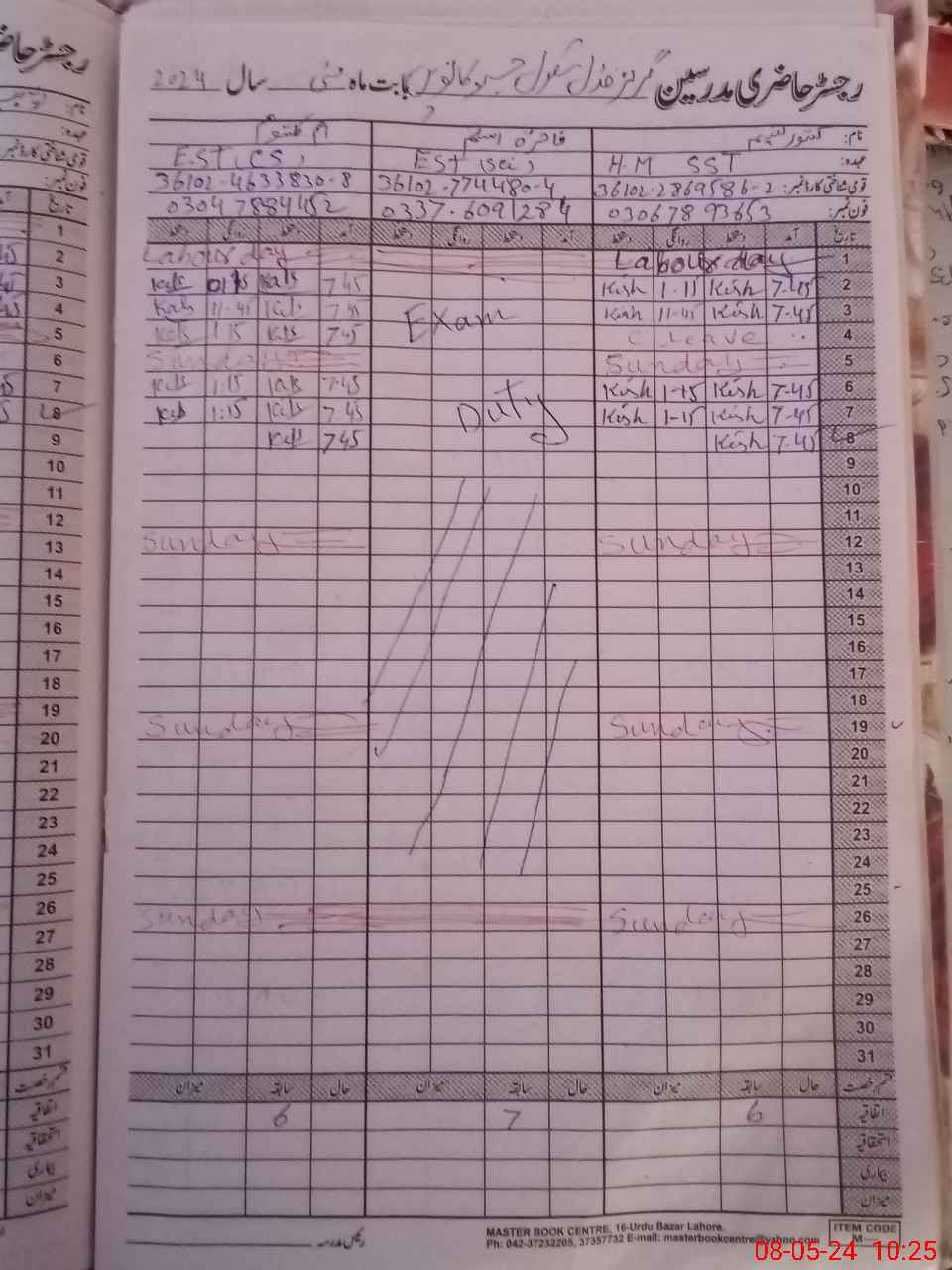 | 36**** | Fa**** As**** | 3 | 1 | 0 | 0 | 0 | 0 | 0 | 0 | 0 | 0 | 0 | Exam Duty |