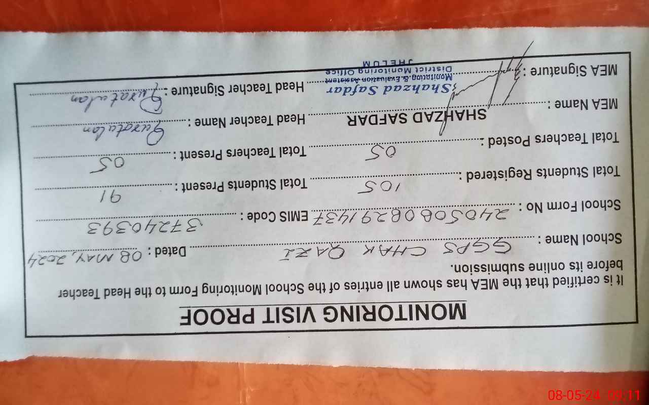 | EMIS Code: 37240393 | Name of School: GGPS CHAK QAZI | |||