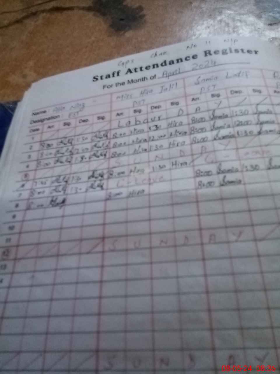 | CNIC | Full Name | Designation | R/C | Absence During Last Calender Month |