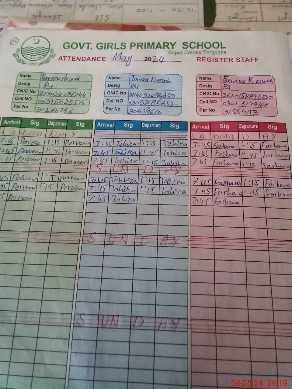 | District: SARGODHA | Tehsil: SARGODHA | Markaz: SARGODHA SADAR - FEMALE | Level: Primary | |