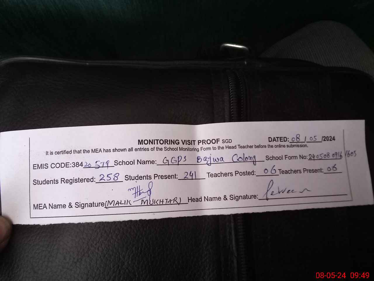 | EMIS Code: 38420579 | Name of School: GGPS BAJWA COLONY | |||