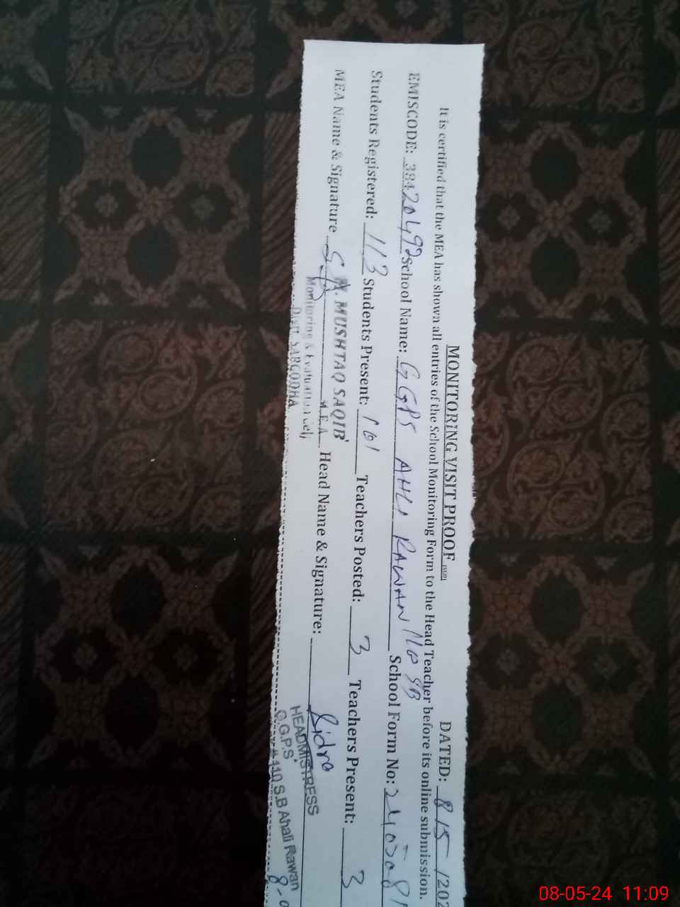 | EMIS Code: 38420492 | Name of School: GGPS CHAK NO.110 SB AHALI RAWANA | |||