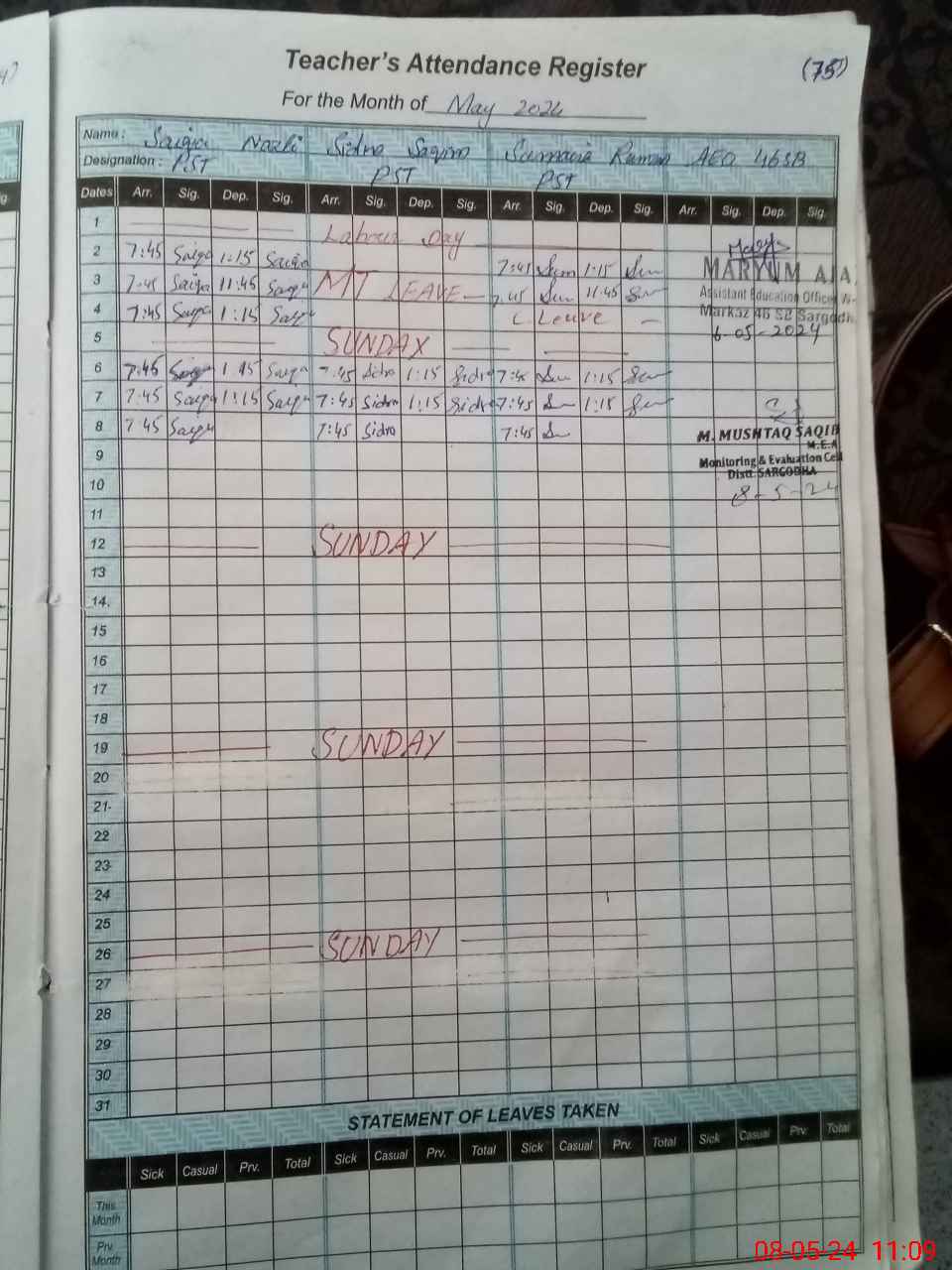 | Name: Si**** Sa**** Designation: (School Headmaster's/Headmistress's) PST Phone/Cell Number: 03**** |