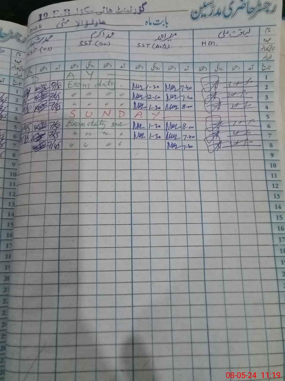 | 36**** | Mu**** Ak**** | Regular | 0 | 13 | 0 | 0 | 0 | 0 | 0 | 0 | 0 | Exam Duty | |