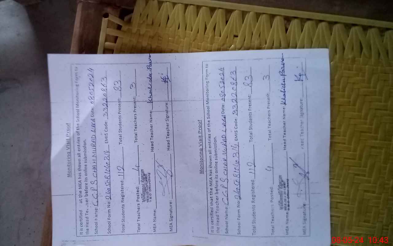 | Name: KH**** PE**** Designation: (School Headmaster's/Headmistress's) PST Phone/Cell Number: 03**** |