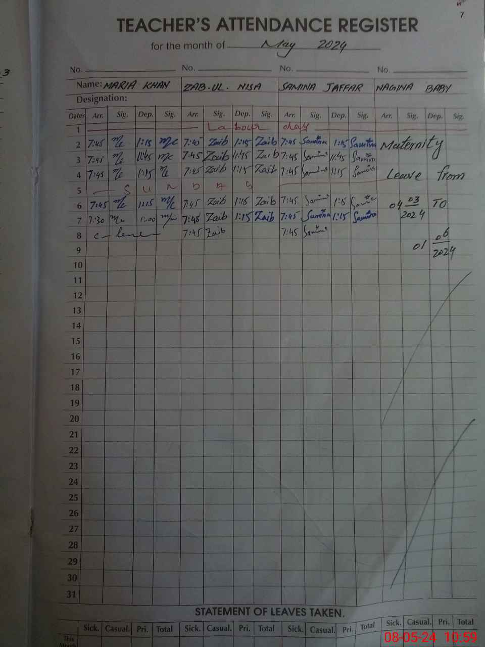 | 35**** | Na**** Ba**** | Contract | 30 | 0 | 0 | 30 | 0 | 0 | 0 | 0 | 0 | Maternity | |