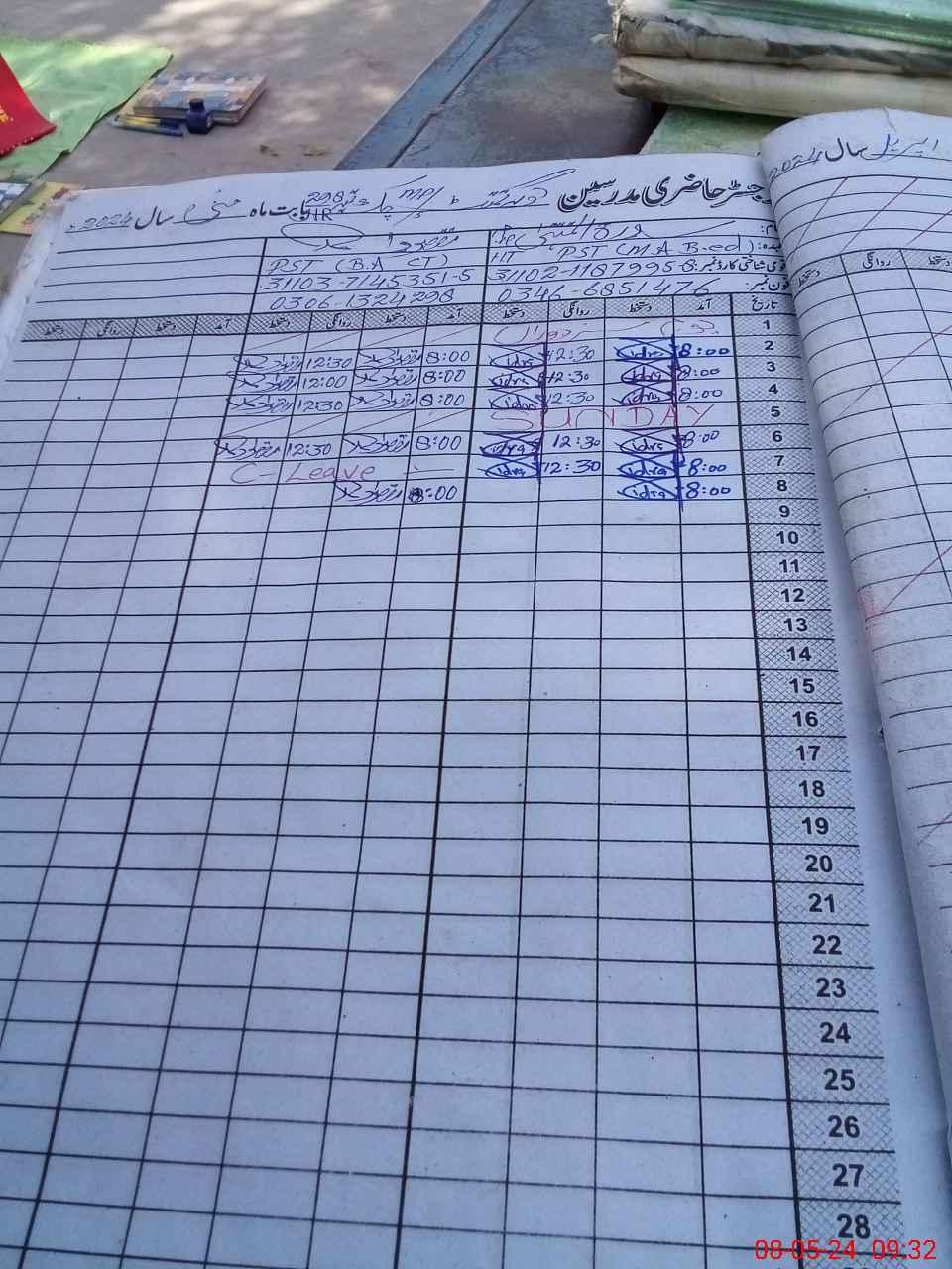 | CNIC | Full Name | Designation | R/C | Absence During Last Calender Month |