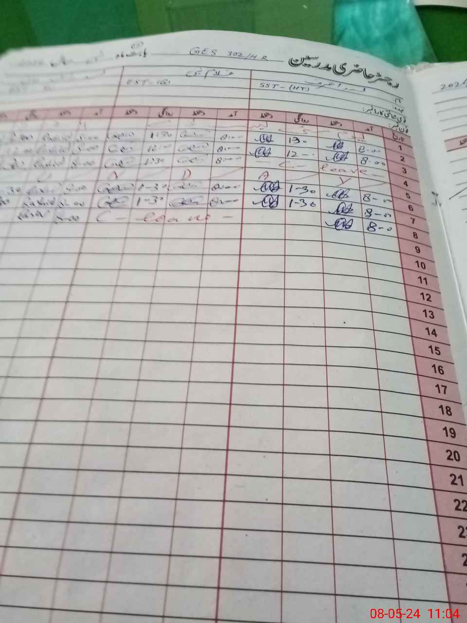 | CNIC | Full Name | Designation | R/C | Absence During Last Calender Month |