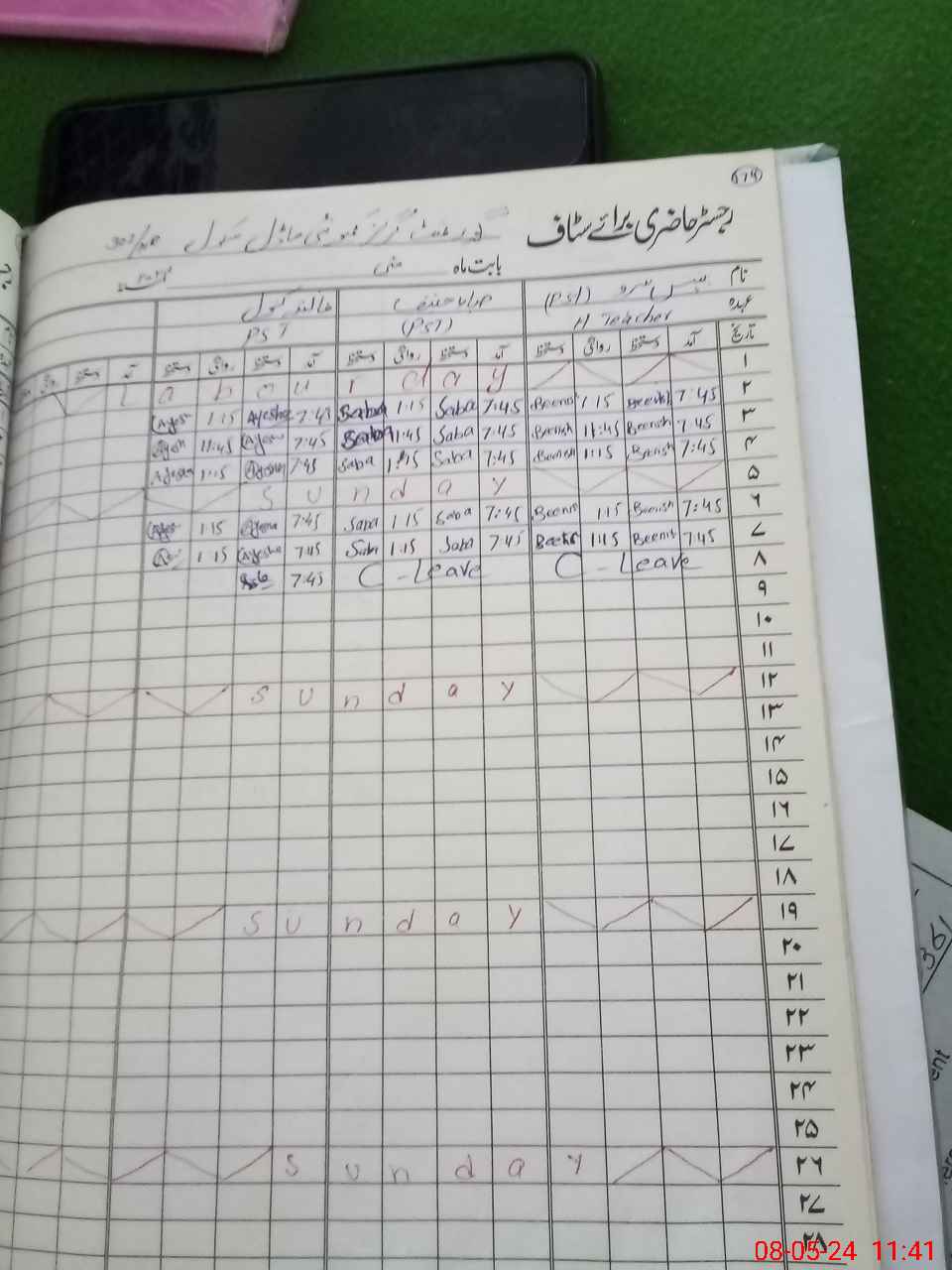 | CNIC | Full Name | Designation | R/C | Absence During Last Calender Month |