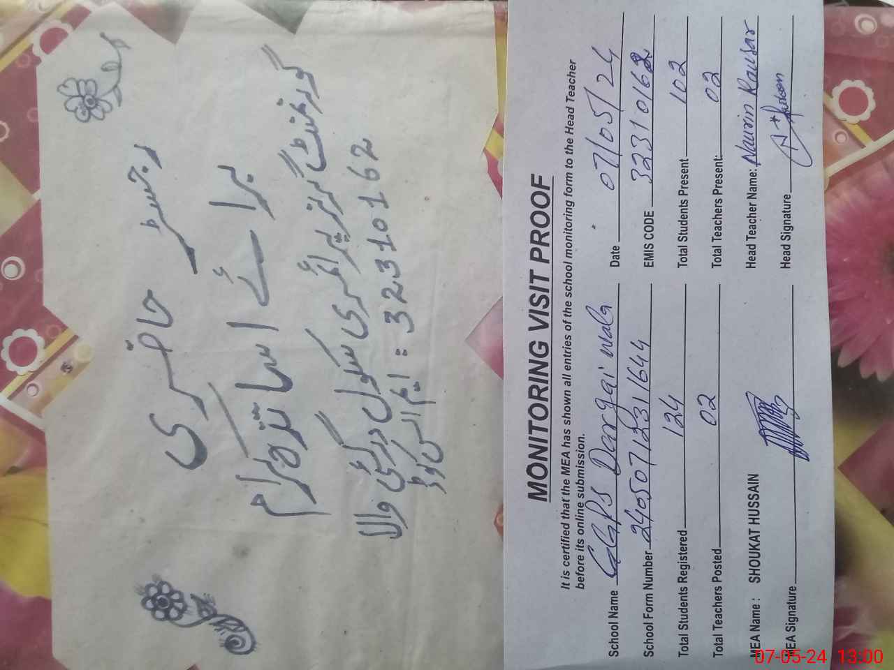 | EMIS Code: 32310162 | Name of School: GGPS DARGHAI WALA | |||