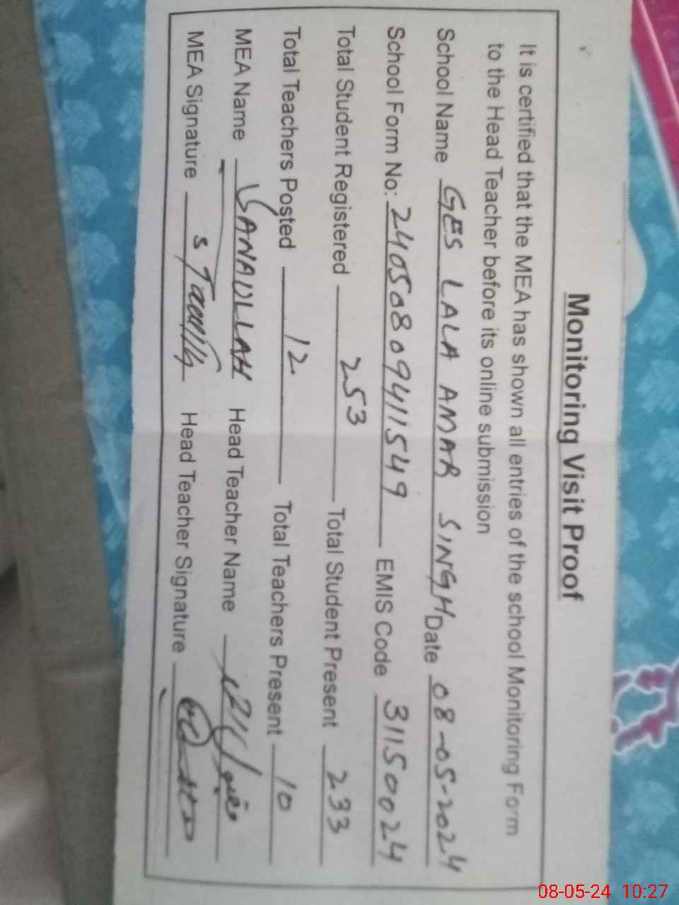 | EMIS Code: 31150024 | Name of School: GES LALA AMIR SINGH | |||