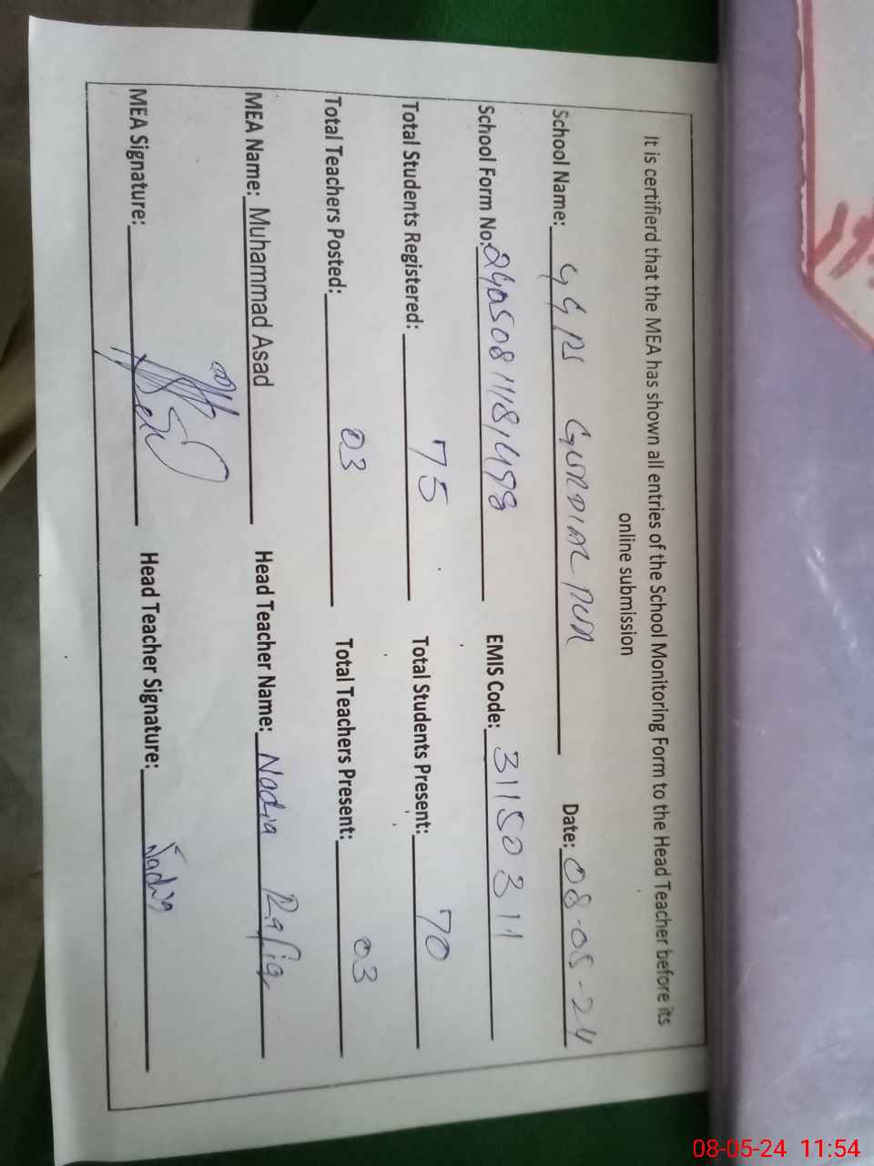 | EMIS Code: 31150311 | Name of School: GGPS GURDIAL PUR | |||