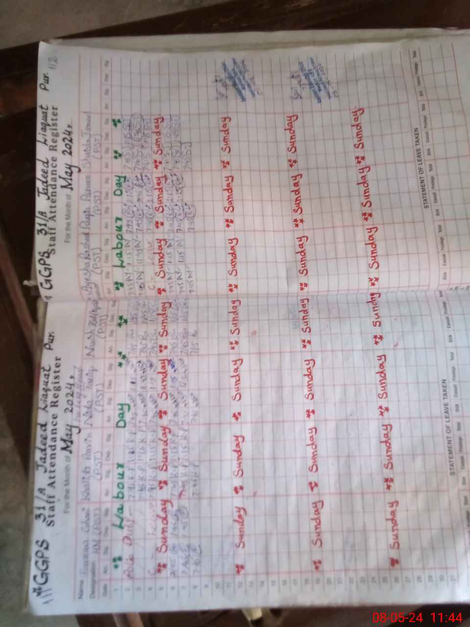 | Leave | Duty | Absent | Maternity | Medical | Ex- Pak |