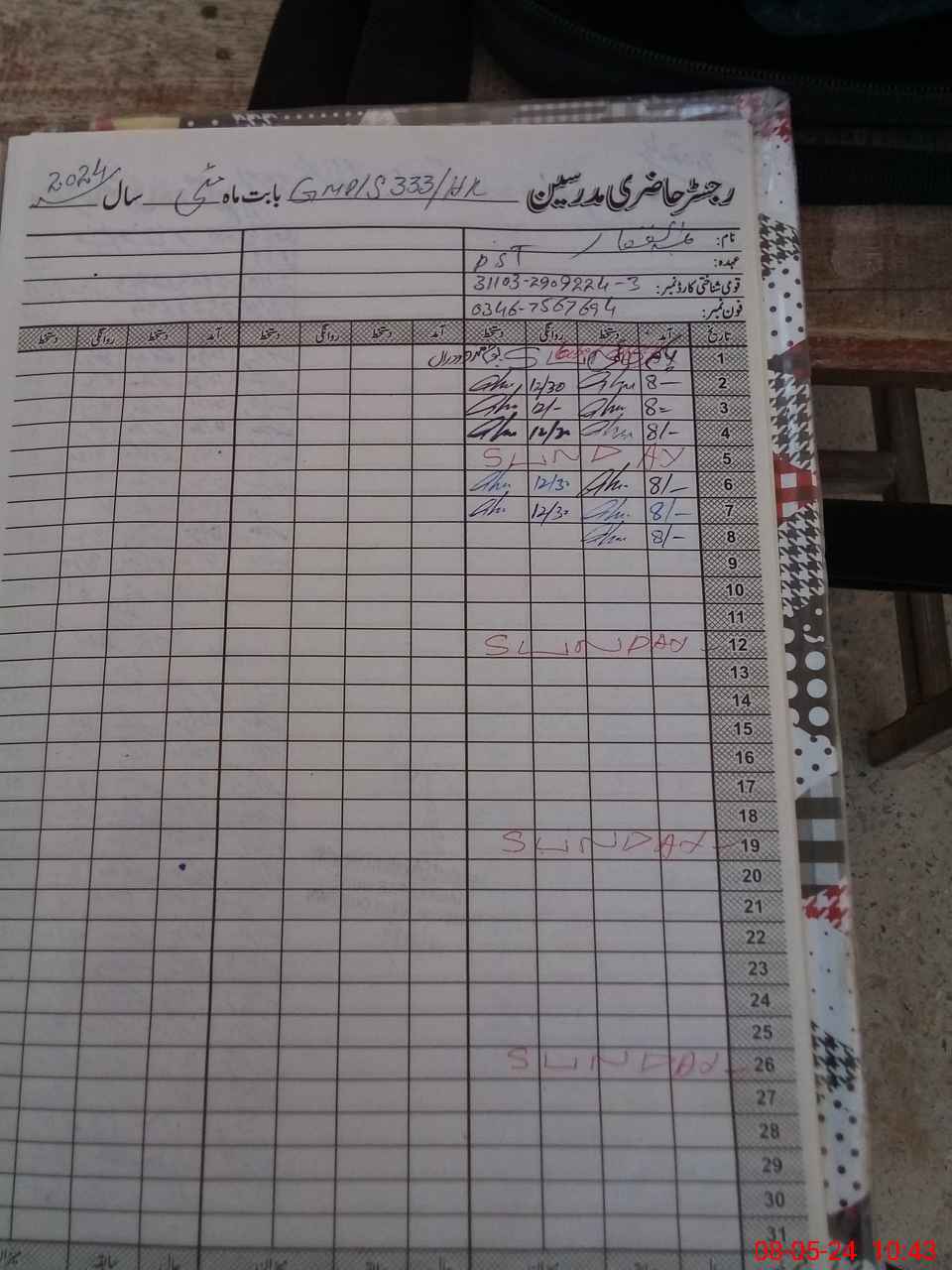 | CNIC | Full Name | Designation | R/C | Absence During Last Calender Month |