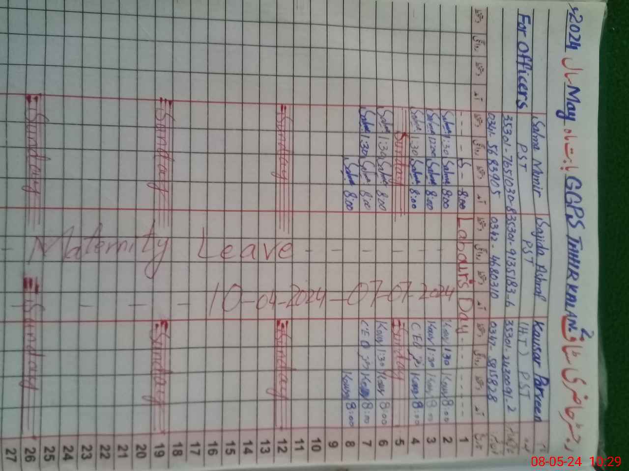 | 35**** | Sa**** As**** | PST | Regular | 15 | 0 | 0 | 15 | 0 | 0 | 0 | 0 | 0 | Maternity |