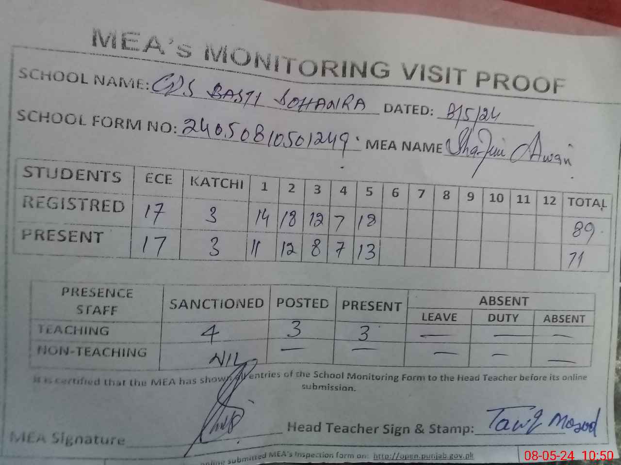 | EMIS Code: 36410518 | Name of School: GPS BASTI SOHARA, MOUZA KOTLI BHUTTA, KABIRWALA | |||