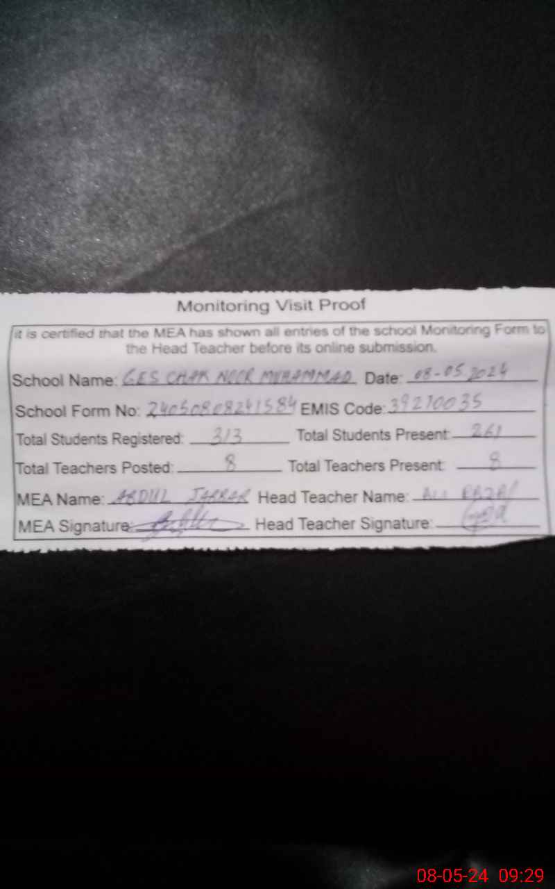 | EMIS Code: 39210035 | Name of School: GES CHAK NOOR MUHAMMAD | |||