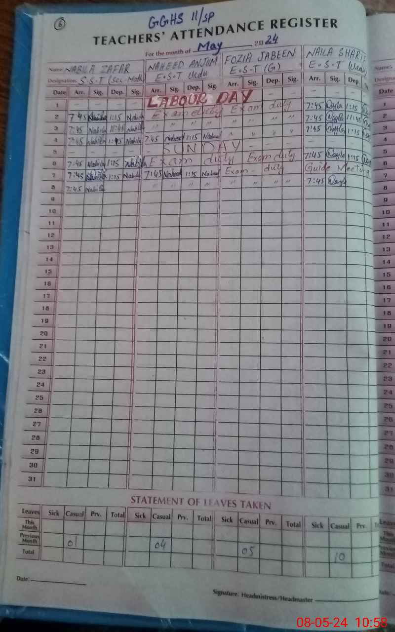 | Name: NA**** ZA**** Designation: (School Headmaster's/Headmistress's) SST Incharge Phone/Cell Number: 03**** |
