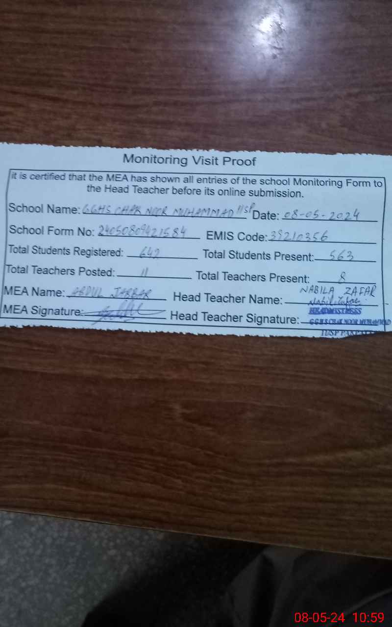 | EMIS Code: 39210356 | Name of School: GGHS CHAK NOOR MUHAMMAD 11/SP | |||