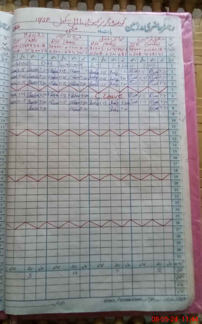 | Name: UZ**** NO**** Designation: (School Headmaster's/Headmistress's) SSE ( Urdu ) Phone/Cell Number: 03**** |