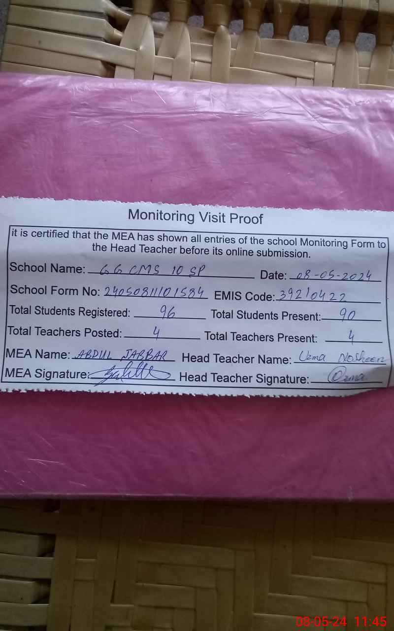 | Certified that this School was Inspected by the Undersigned MEA/DMO Today and the Information Stated Above is as Per Record. | |||||