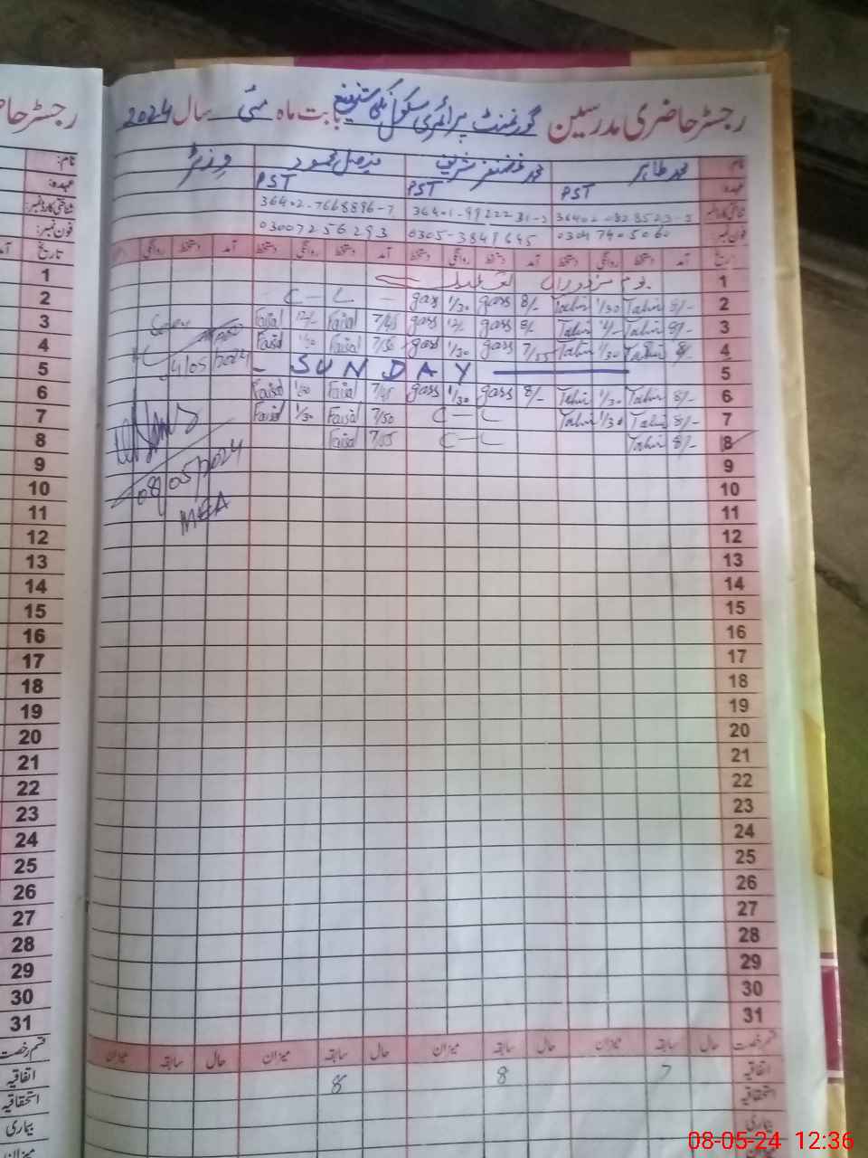 | Name: MU**** TA**** Designation: (School Headmaster's/Headmistress's) PST Phone/Cell Number: 03**** |