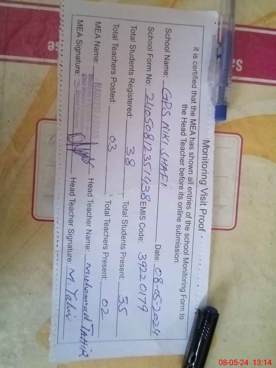 | EMIS Code: 39220179 | Name of School: GPS NIKKI SHAFI P/O SHAFI ARIFWALA | |||