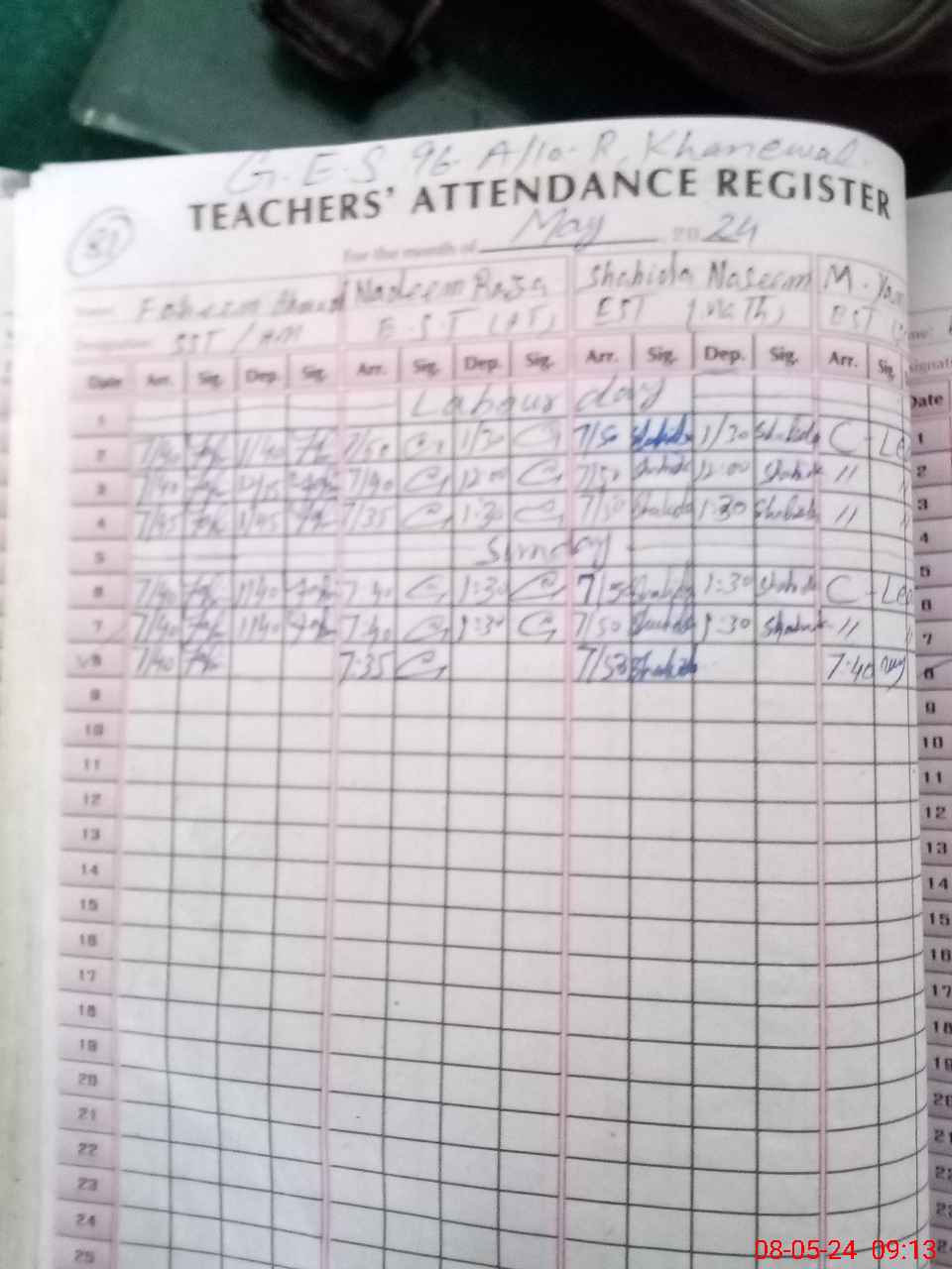 | CNIC | Full Name | Designation | R/C | Absence During Last Calender Month |