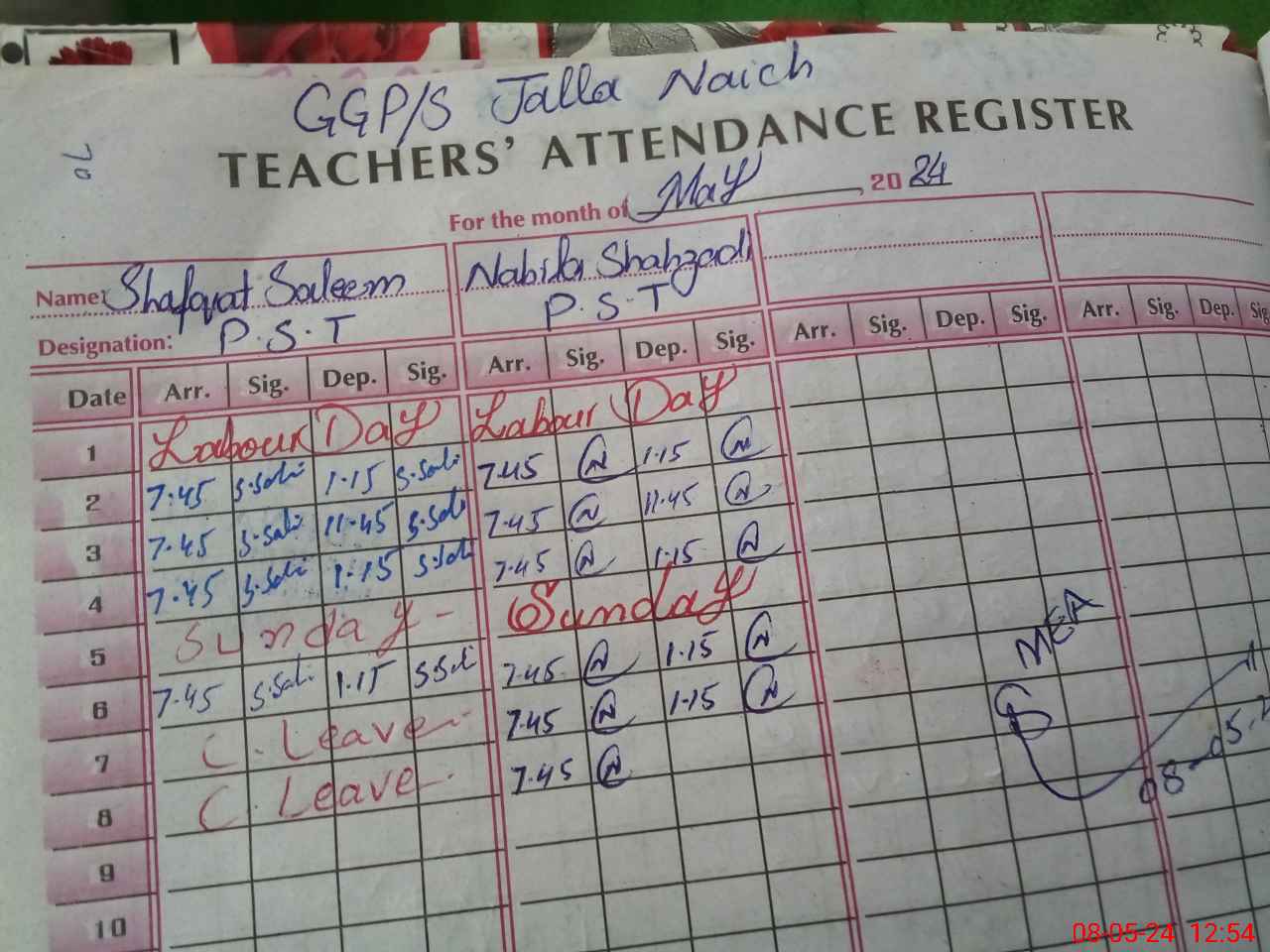 | Name: SH**** SA**** Designation: (School Headmaster's/Headmistress's) PST Phone/Cell Number: 03**** |