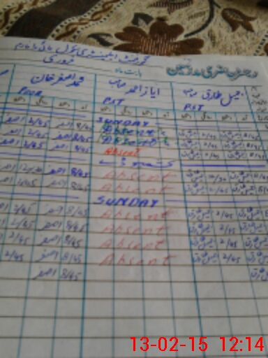 | CNIC | Full Name | Designation | R/C | Absence During Last Calender Month |